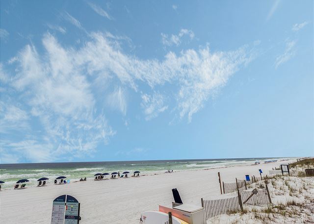 This 1100 sq ft Gulf View 7th(top)-floor 2 BR/2 BA unit is beautifully decorated. Step onto your private balcony, accessible from both the living area and master bedroom, and soak in the beauty and breezes of the Gulf.